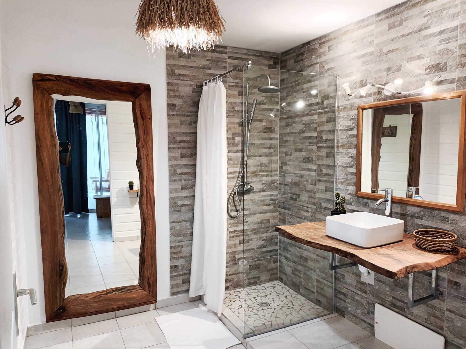 The property located at heart of a small hill in a well ventilated picturesque and green with a panoramic view includes 3 wooden bungalows fashionable Creole, focused due west to the beautiful sunsets on Guadeloupe and the Saintes is ideal for spend a dream holiday.