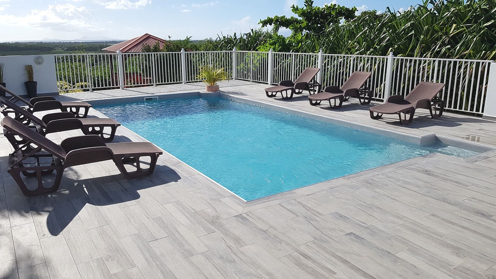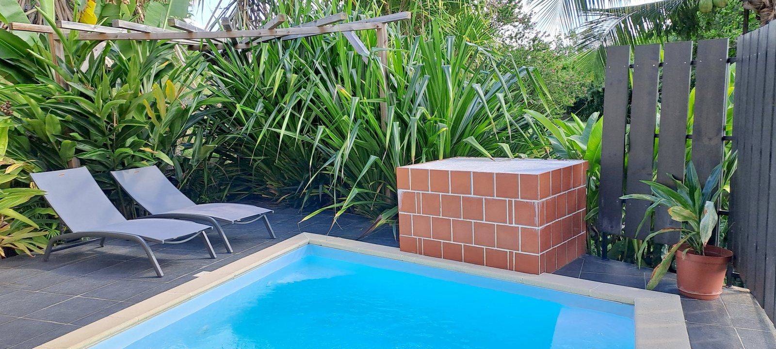 Closed to houses a pool of fresh water to refresh and relax. A space idleness arranged around the pool with deck chairs, tables and umbrellas, barbecue and small carbet. You can also wander and dream in his tropical garden.