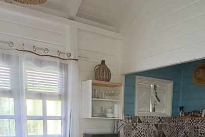 - An outdoor kitchen with a refrigerator, microwave, oven, hob, coffee maker, toaster and cooking utensils